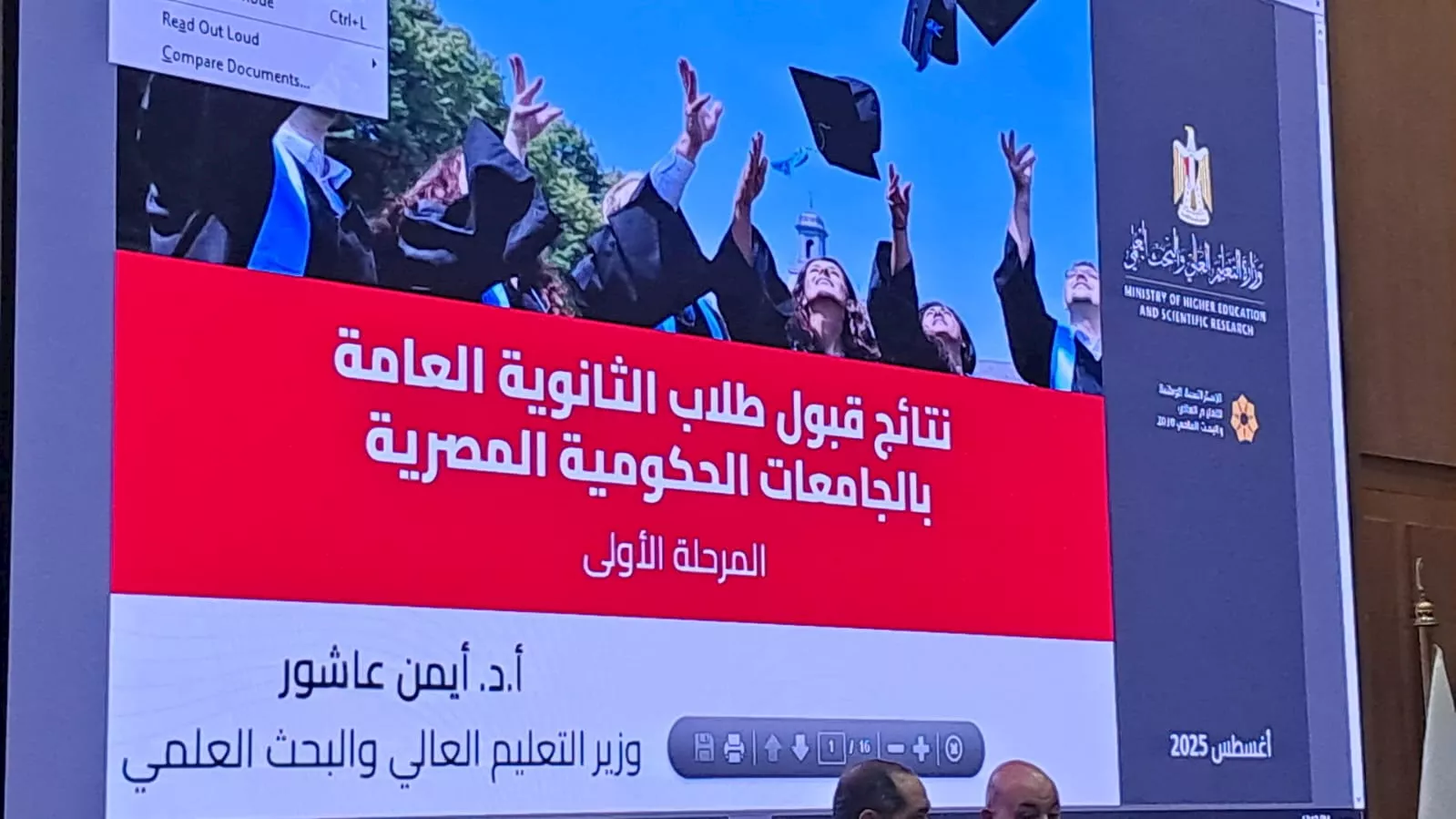 وعقد الدكتور أيمن عاشور، وزير التعليم العالي، المؤتمر الصحفي والذي أعلن فيه نتائج تنسيق المرحلة الأولى لتنسيق الجامعات الحكومية والمعاهد، بحضور الدكتور جودة غانم رئيس قطاع التعليم والمُشرف العام على مكتب التنسيق، والدكتور عادل عبد الغفار المُستشار الإعلامي والمُتحدث الرسمي للوزارة.