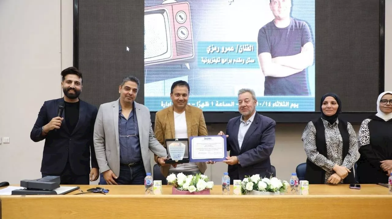ورحبت الدكتورة منى بالفنان عمرو رمزي، مشيدة بمشواره المهني الذي يجمع بين العمل الفني والإعلامي، ويقدم نموذجًا يحتذى به للشباب الطامحين في دخول هذا المجال الواسع والمتجدد.