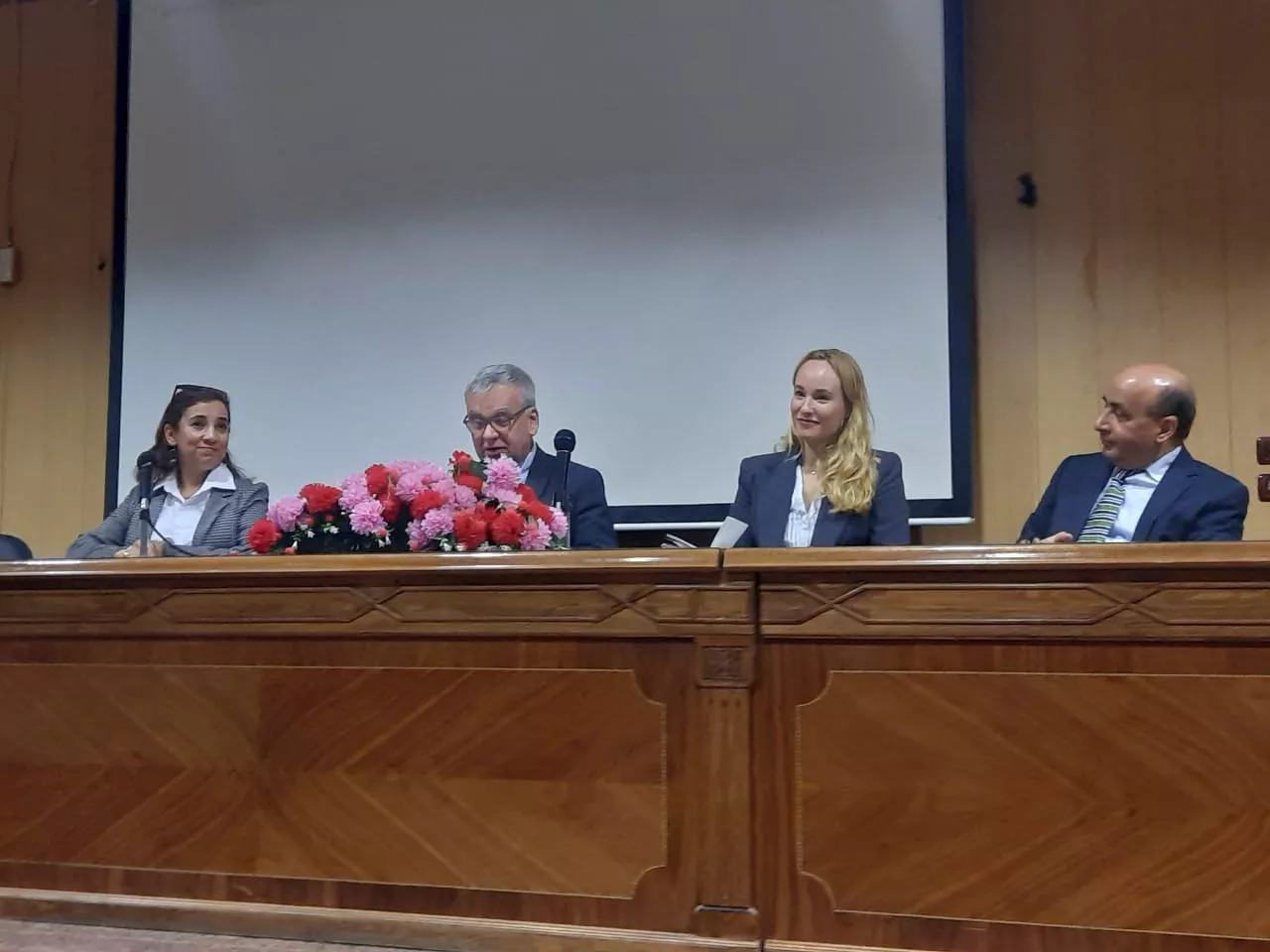 ألقى محاضرة بقاعة المؤتمرات بكلية الالسن بحضور الدكتورة يمنى صفوت، وكيل الكلية لشئون خدمة المجتمع وتنمية البيئة والقائم بتيسير أعمال عميد الكلية، الدكتور نهلة ناجي، رئيس قسم اللغة الألمانية، والدكتور سليمان بدر الذي قام بتنسيق وإعداد الزيارة، وأعضاء هيئة التدريس والهيئة المعاونة وطلاب قسم اللغة الألمانية، في إطار حرص الجامعة والكلية على تعزيز التعاون الدولي وتوطيد الشراكات الأكاديمية والثقافية مع الجانب الألماني.