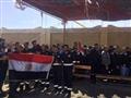 بالصور- عمال "حقل ظهر" يرفعون علم مصر أمام لجنة الوافدين ببورسعيد
