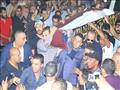 أحمد الفيشاوي ينفعل على الصحفيين خلال تشييع جثمان والده