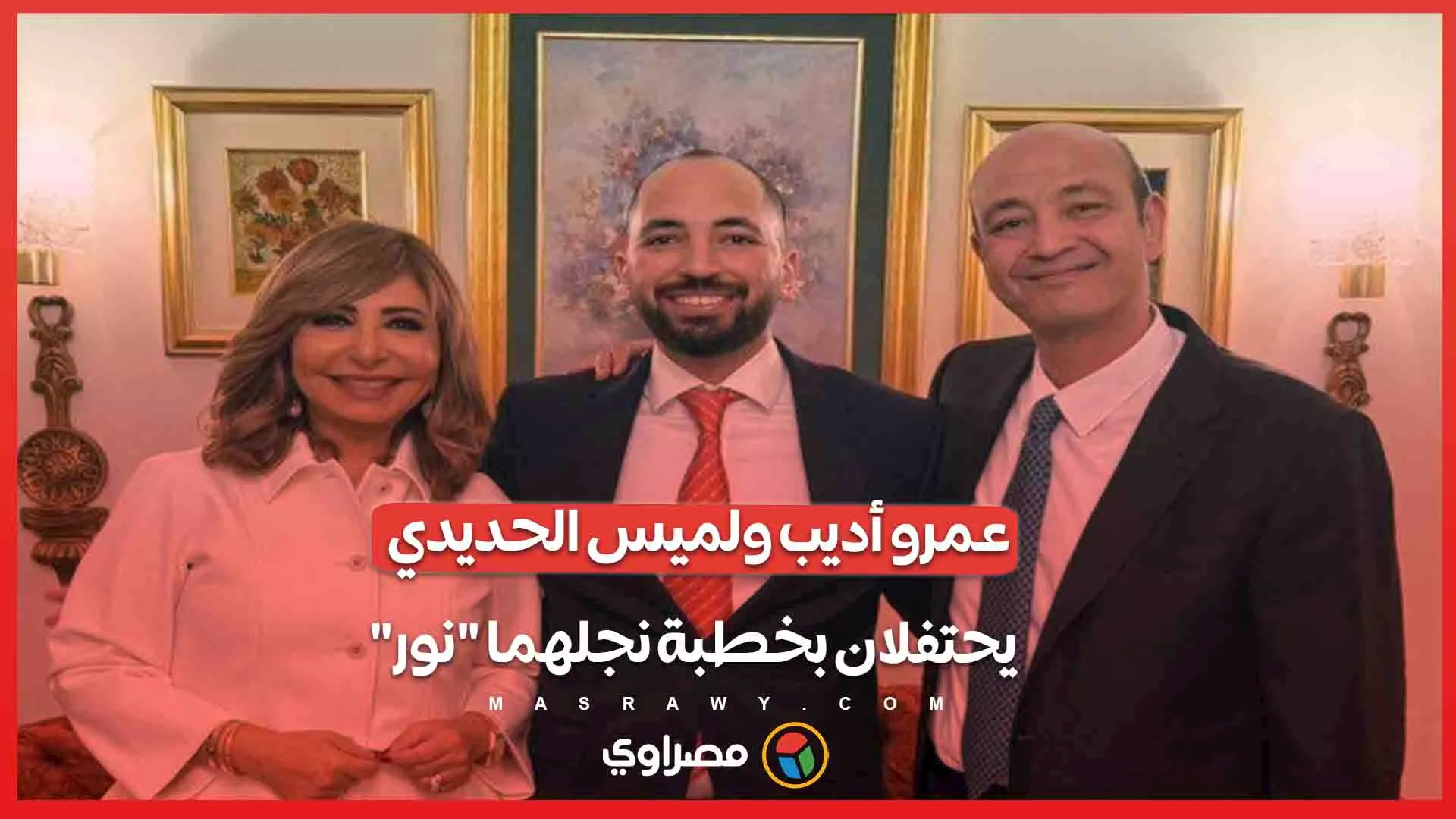 عمرو أديب ولميس الحديدي يحتفلان بخطبة نجلهما "نور"