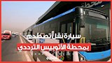 حادث مُروع.. سيارة نقل تصطدم بمحطة الأتوبيس الترددي