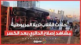 حادث انقلاب تريلا المريوطية.. مشاهد من الحادث لإصلاح الدائري بعد كسر الحاجز الحديدي