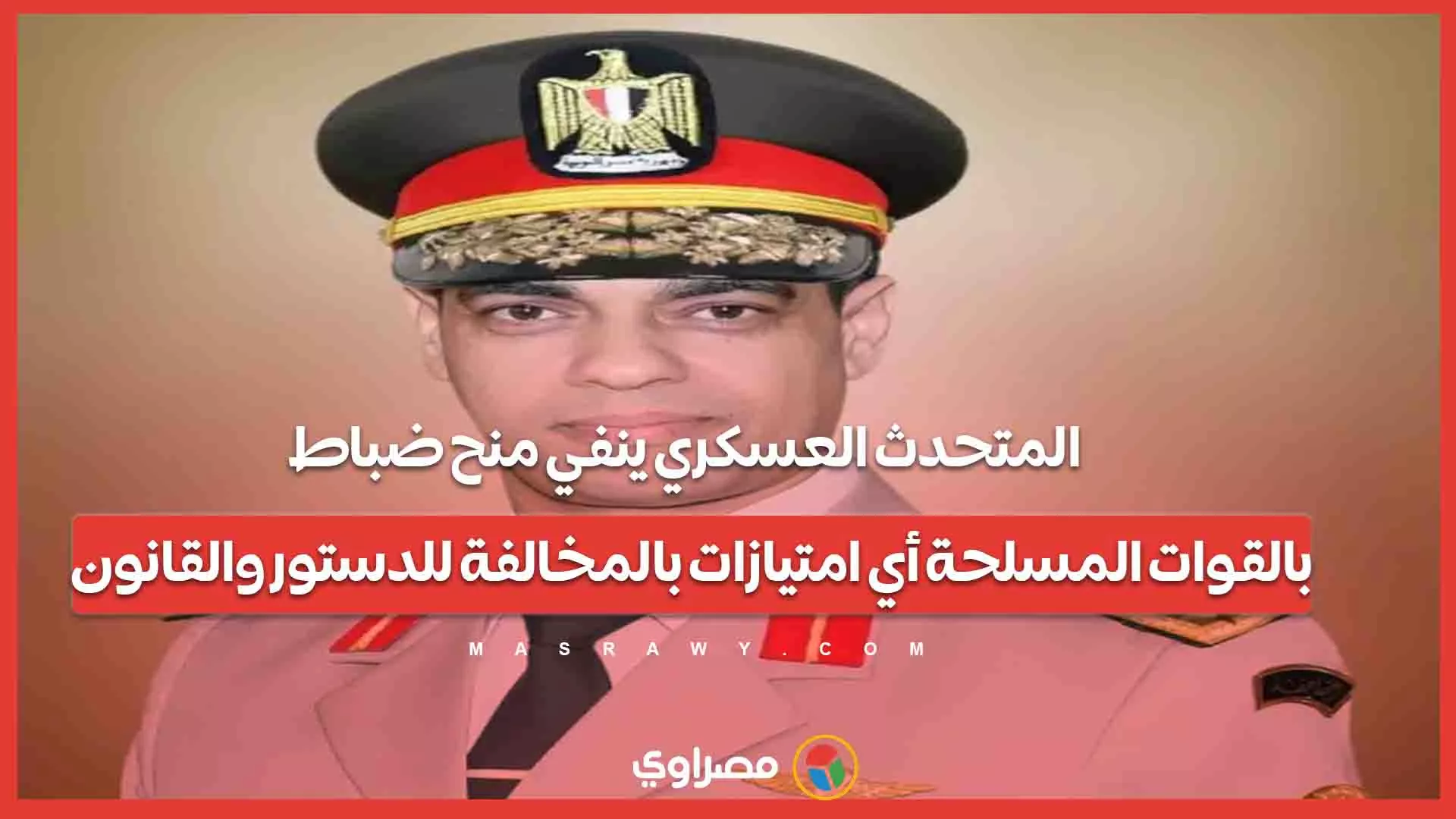 المتحدث العسكري ينفي منح ضباط بالقوات المسلحة أي امتيازات بالمخالفة للدستور والقانون