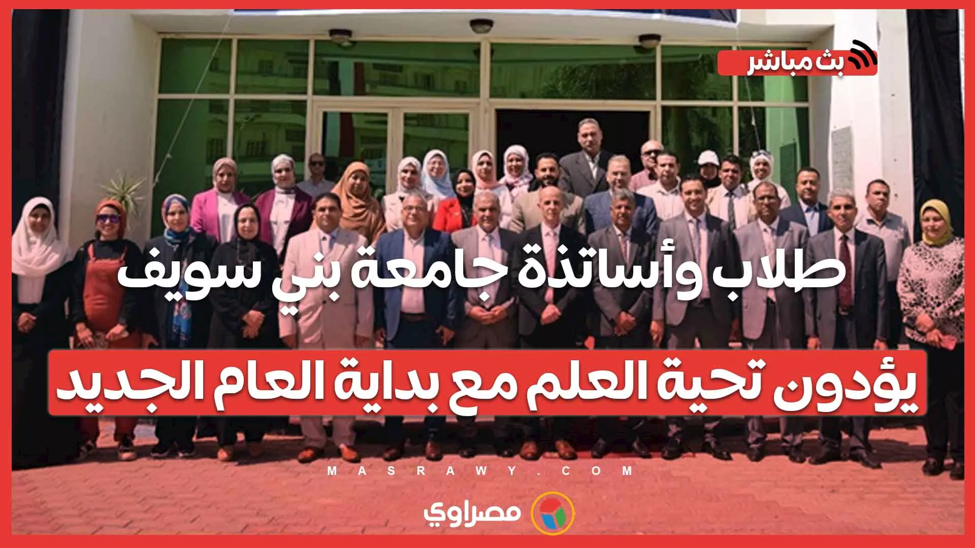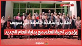 طلاب وأساتذة جامعة بني سويف يؤدون تحية العلم مع بداية العام الجديد