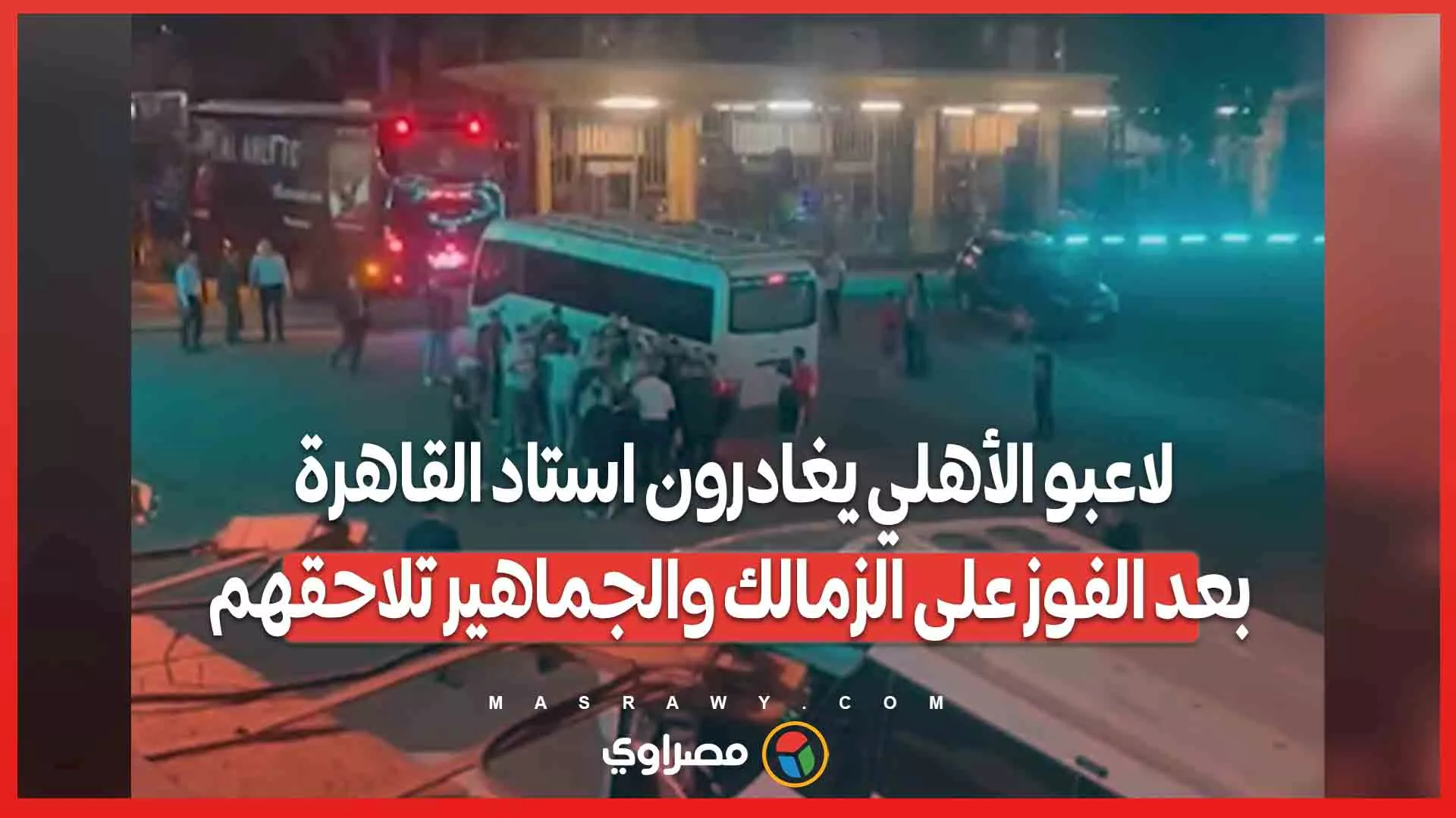 لاعبو الأهلي يغادرون استاد القاهرة بعد الفوز على الزمالك والجماهير تلاحقهم