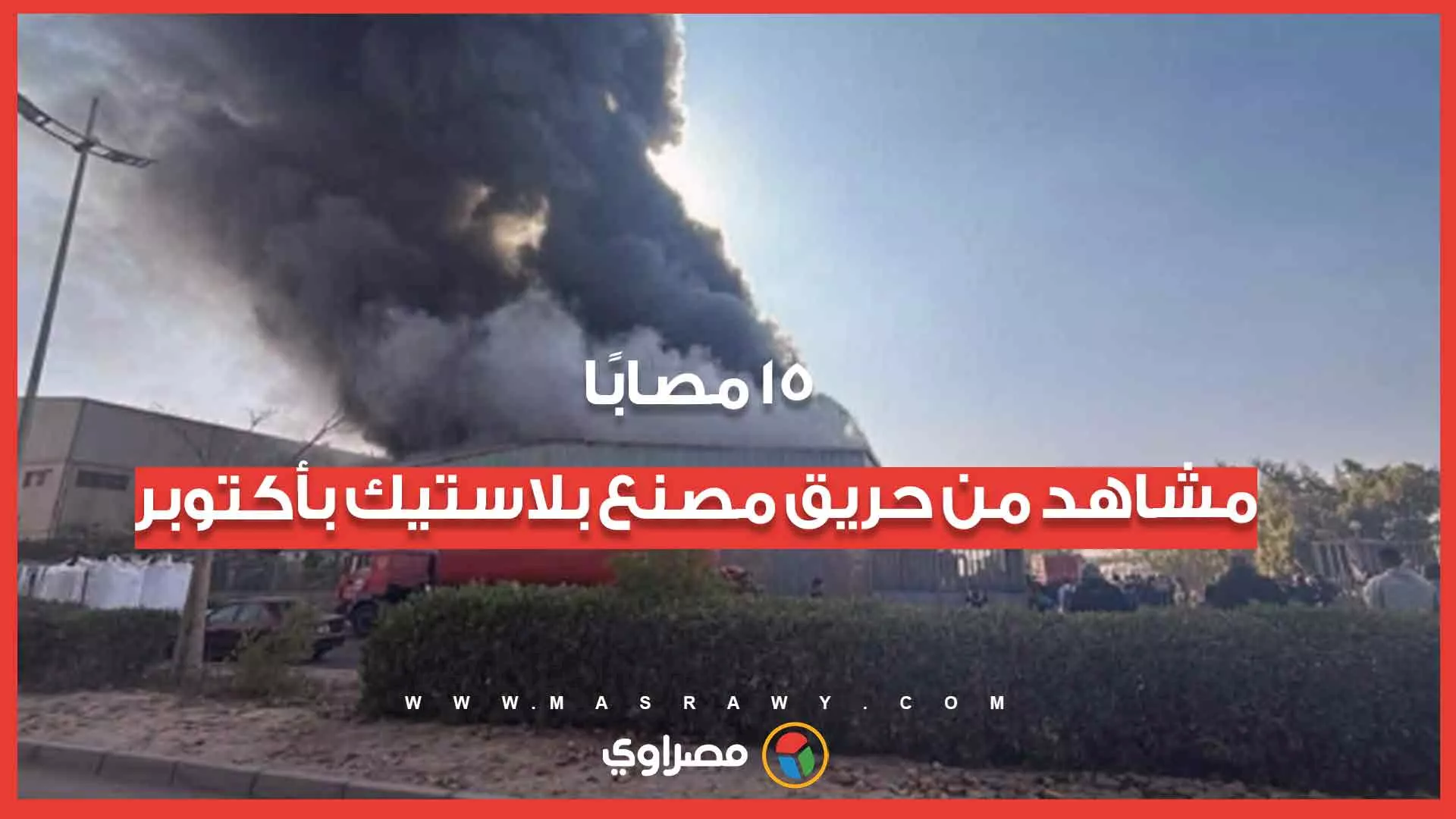 15 مصابًا.. مشاهد من حريق مصنع بلاستيك بأكتوبر