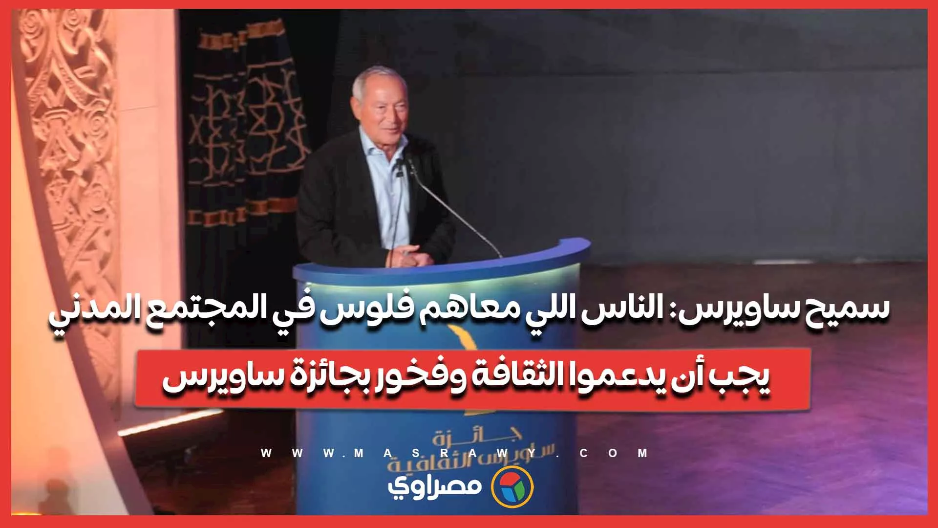 سميح ساويرس: الناس اللي معاهم فلوس في المجتمع المدني يجب أن يدعموا الثقافة وفخور بجائزة ساويرس