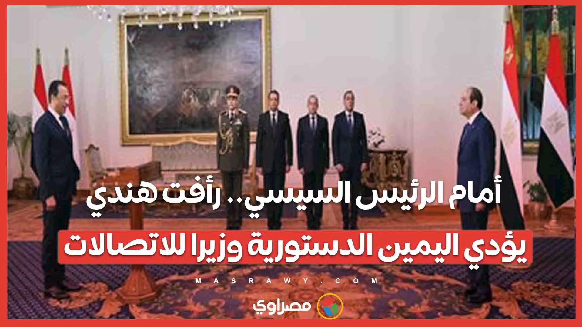 الرئيسية أخبار مصراوى TV أمام الرئيس السيسي.. رأفت هندي يؤدي اليمين الدستورية وزيرا للاتصالات كتب : مصراوي 04:30 م 11/02/2026 تابعنا على لمعرفة حالة الطقس الآن اضغط هنا لمعرفة أسعار العملات لحظة بلحظة اضغط هنا وزيرا للاتصالات