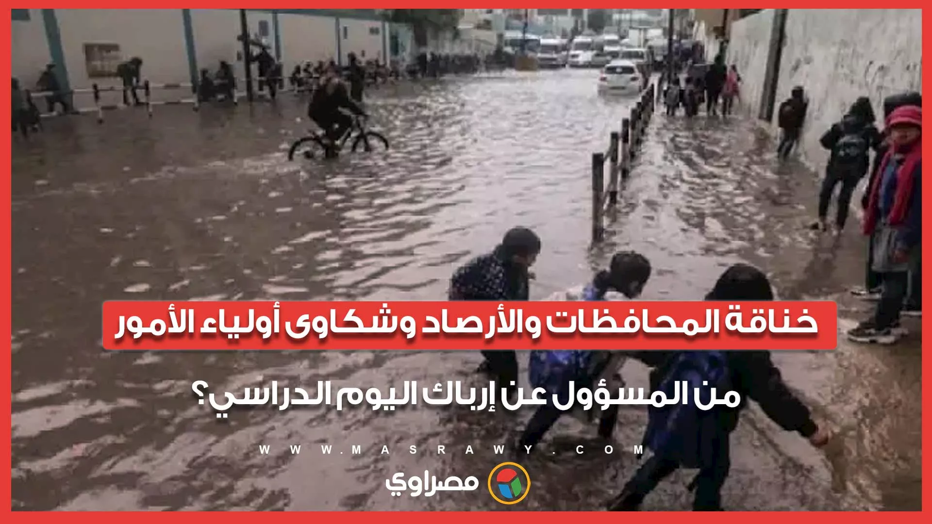 الرئيسية أخبار مصراوى TV خناقة المحافظات والأرصاد وشكاوى أولياء الأمور.. من المسؤول عن إرباك اليوم الدراسي؟ كتب : مصراوي 04:00 م 29/03/2026 تابعنا على لمعرفة حالة الطقس الآن اضغط هنا لمعرفة أسعار العملات لحظة بلحظة اضغط هنا وزارة التعليم هيئة الأرصاد الجوية أولياء الأمور المدارس في مصر إرباك الدراسة قرارات المحافظات