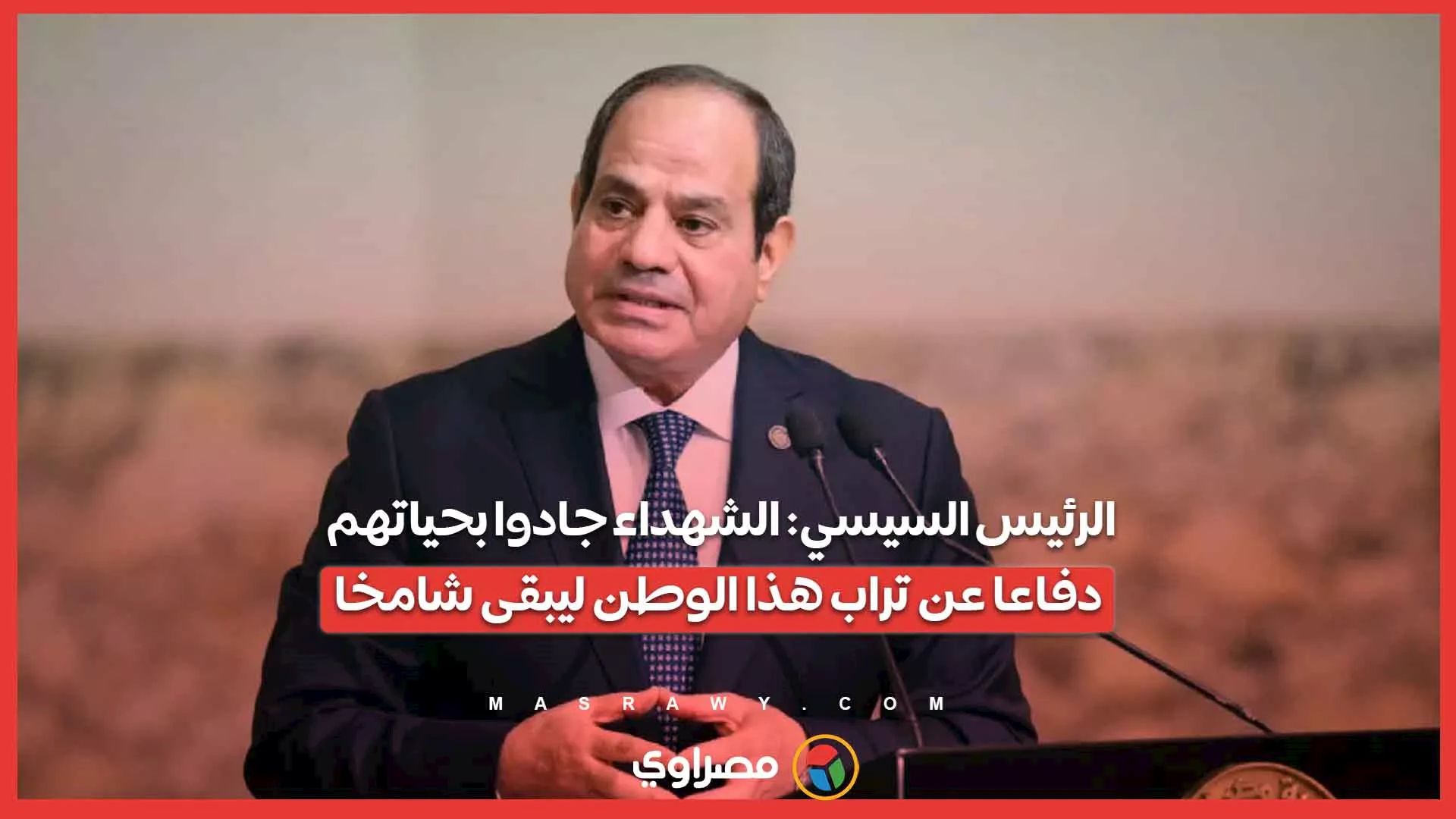 الرئيسية أخبار مصراوى TV الرئيس السيسي: الشهداء جادوا بحياتهم دفاعا عن تراب هذا الوطن ليبقى شامخا كتب : مصراوي 07:42 م 09/03/2026 تابعنا على لمعرفة حالة الطقس الآن اضغط هنا لمعرفة أسعار العملات لحظة بلحظة اضغط هنا السيسي