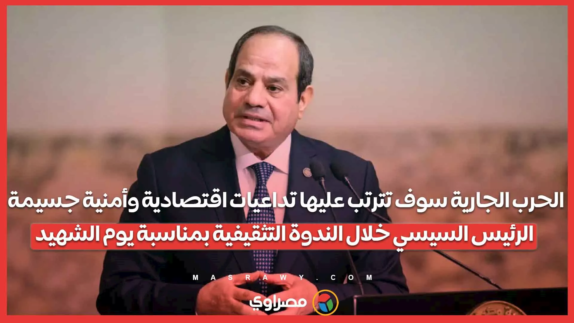 الرئيسية أخبار مصراوى TV الحرب الجارية ستترتب عليها تداعيات اقتصادية وأمنية جسيمة.. الرئيس السيسي خلال احتفالية يوم الشهيد كتب : مصراوي 07:44 م 09/03/2026 تابعنا على لمعرفة حالة الطقس الآن اضغط هنا لمعرفة أسعار العملات لحظة بلحظة اضغط هنا السيسي