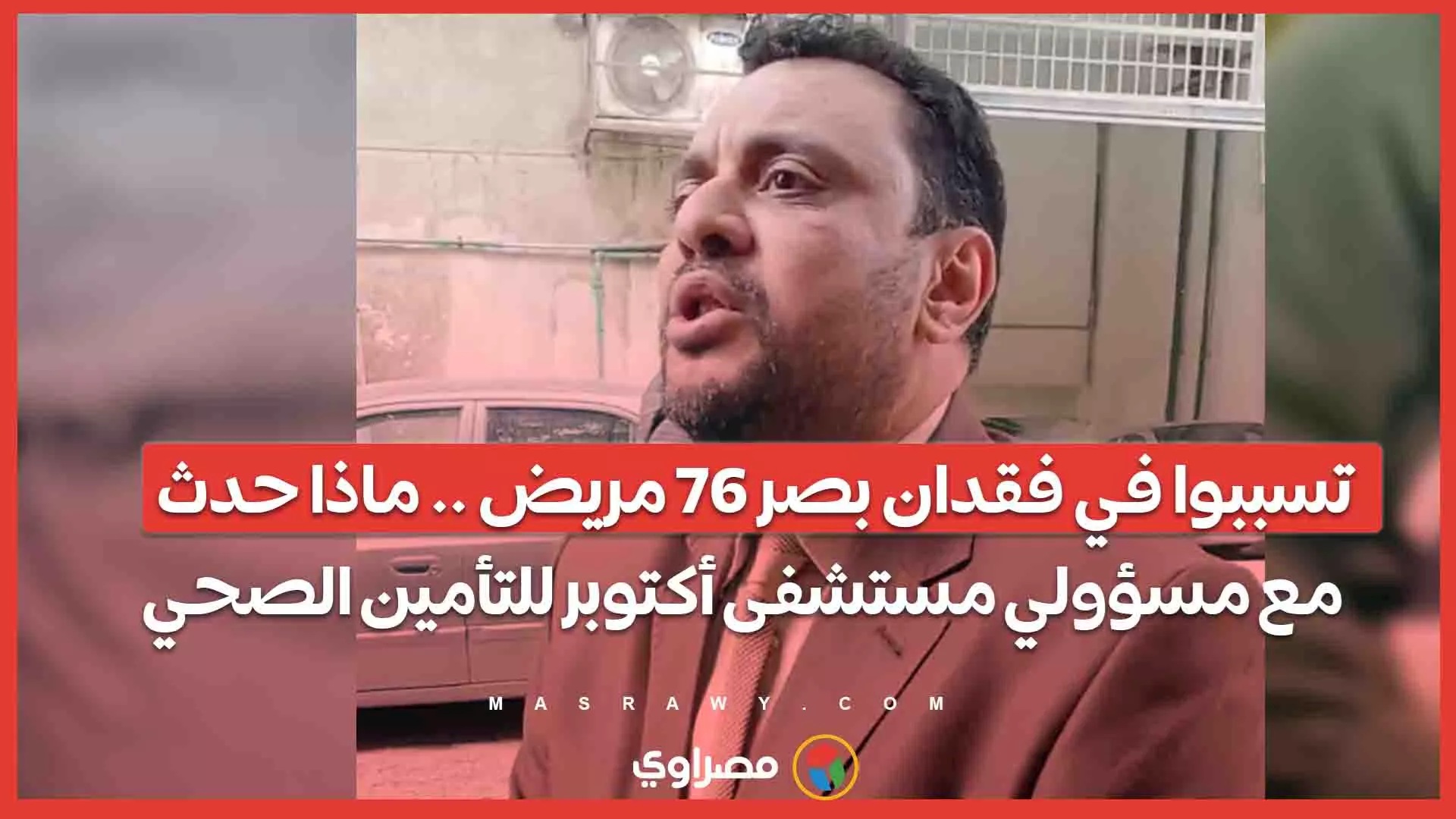 الرئيسية أخبار مصراوى TV تسببوا في فقدان بصر 76 مريض .. ماذا حدث مع مسؤولي مستشفى أكتوبر للتأمين الصحي. كتب : مصراوي 05:21 م 01/04/2026 تابعنا على لمعرفة حالة الطقس الآن اضغط هنا لمعرفة أسعار العملات لحظة بلحظة اضغط هنا مستشفى أكتوبر للتأمين الصحي
