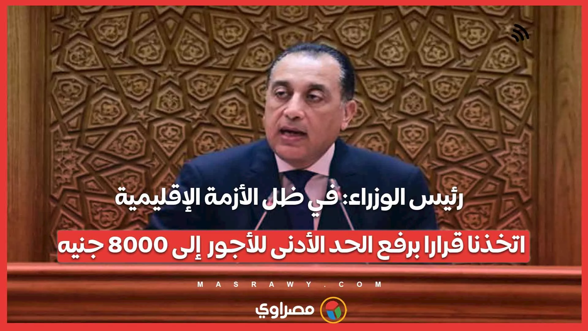 الرئيسية أخبار مصراوى TV رئيس الوزراء: في ظل الأزمة الإقليمية اتخذنا قرارا برفع الحد الأدنى للأجور إلى 8000 جنيه كتب : مصراوي 03:06 م 21/04/2026 تابعنا على لمعرفة حالة الطقس الآن اضغط هنا لمعرفة أسعار العملات لحظة بلحظة اضغط هنا رئيس الوزراء