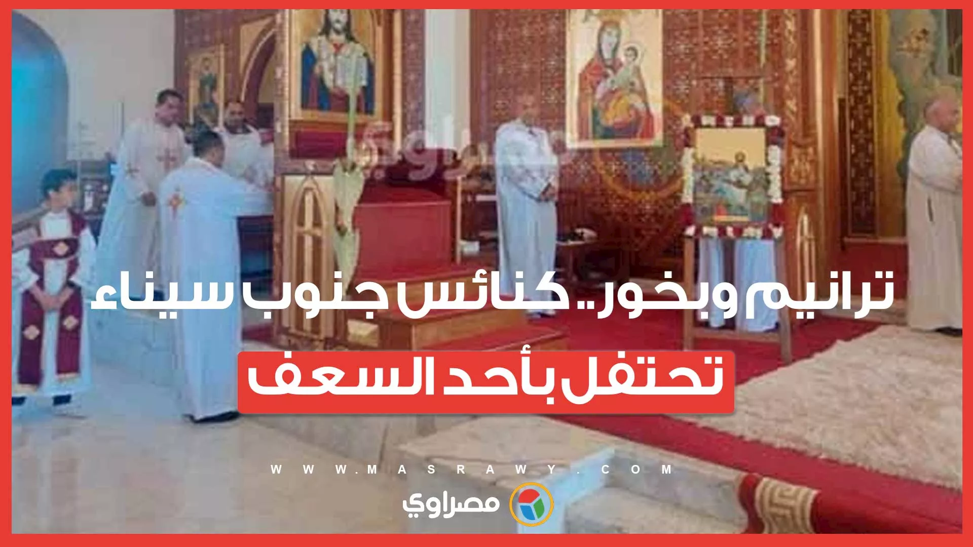 ترانيم وبخور.. كنائس جنوب سيناء تحتفل بأحد السعف