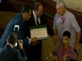 لفتة إنسانية للسيسي خلال تكريمه شاب من ذوي القدرات الخاصة بمؤتمر جامعة القاهرة -فيديو