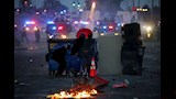 ويطلق عمداء شرطة مقاطعة لوس أنجلوس قنابل صوتية وقنابل الغاز المسيل للدموع كل بضع دقائق في محاولة لإبعاد المتظاهرين.
