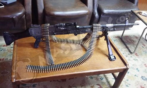 داهمت قوة أمنية مسكن المتهم، وتمكنت من ضبط السلاح الناري عبارة عن ''رشاش جرينوف'' عيار 7.62 × 56 مم، وشريط ذخائر يحوي ( 142 ) طلقة من ذات العيار .