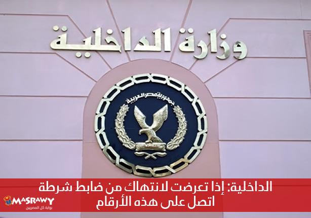 نشرت وزارة الداخلية عدة ارقام ومواقع إليكترونية، للإبلاغ عن أي واقعة انتهاك أو تجاوز من افرادها يمس حقوق المواطنين.
