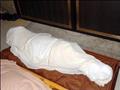 معاينة الرائد خالد يسري، نائب مأمور العجوزة، دلت أن الجثة لعاطل سبق اتهامه في 11 قضية يدعى خالد محمد عثمان 37 سنة، مسجاه على ظهرها بأرضية الغرفة، وذراعيه مرفوعتان لأعلى، ووجود سلك كهربائي ملابس لذراعه الأيمن، والجثة في حالة تعفن.