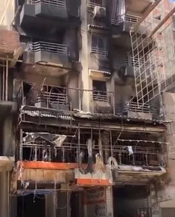 حريق عقار فيصل.. المعاينة: النار بدأت بسنتر ملابس وامتدت لمحل أحذية | صور