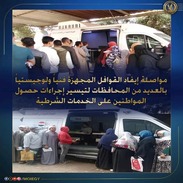 وتقرر استمرار عمل القوافل بالمحافظات ذاتها اعتبارًا من 29-11-2025 نظرًا للإقبال المتزايد من المواطنين، بما يضمن توفير الخدمات الثبوتية بصورة أسرع.