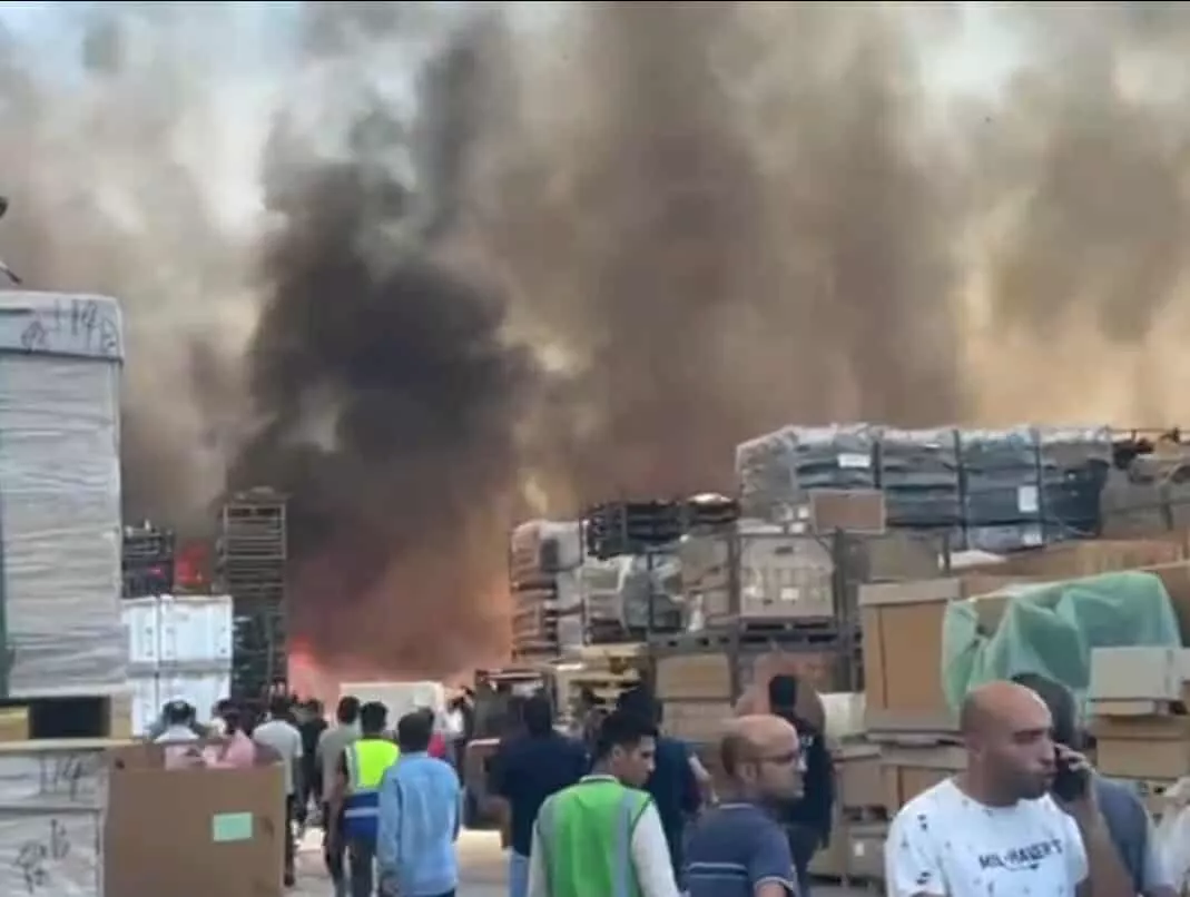 حريق هائل مصحوبا بأصوات انفجارات وقع داخل مخزن تابع لشركة بالمنطقة الصناعية الثالثة اليوم الثلاثاء.