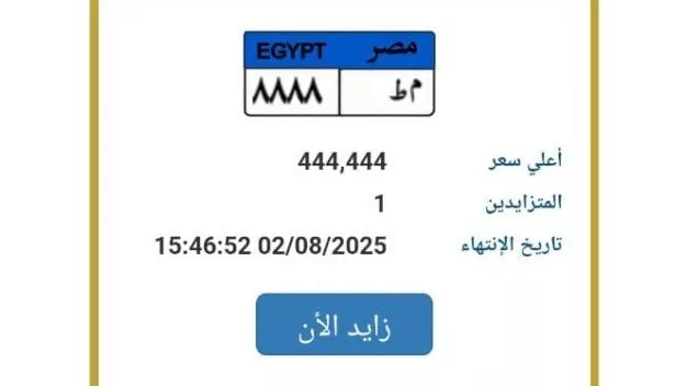 ومن المقرر أن تنتهي المزايدة غدًا السبت 2 أغسطس 2025، وسط توقعات بارتفاع السعر مع قرب موعد الإغلاق.