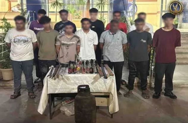 وتمت السيطرة على المشاجرة وضبط جميع المتهمين، وعُثر بحوزتهم على 7 عصي خشبية، و21 زجاجة، وأسطوانة بوتاجاز. وبمواجهتهم أقروا بارتكاب الواقعة بسبب الخلاف المشار إليه.