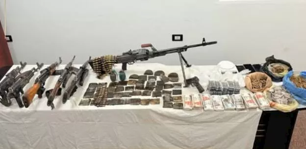 وضبط بحوزتهم (40 كيلو جرام من المواد المخدرة "20 كيلو جرام بانجو ، 10 كيلو جرام شابو ، 5 كيلو جرام هيدرو ، 5 كيلو جرام حشيش" – 1000 قرص مخدر - 7 قطع سلاح نارى "5 بنادق آلية، رشاش جرينوف، طبنجة" – 2 قنبلة يدوية - عدد كبير من الطلقات مختلفة الأعيرة) وتقدر القيمة المالية للمواد المخدرة المضبوطة بقرابة 5 ملايين جنيه.
