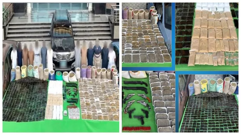 وعقب تقنين الإجراءات، تم استهدافهم وضبطهم، وعُثر بحوزتهم على (طن و212 كيلوجرامًا من المواد المخدرة المتنوعة "هيدرو – حشيش – آيس – بودر")، بالإضافة إلى 12 قطعة سلاح ناري عبارة عن (بندقية آلية – 3 بنادق خرطوش – 5 فرد خرطوش – 3 طبنجات).