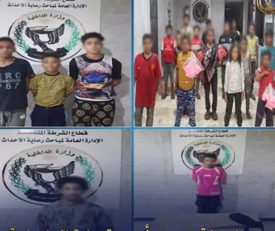 وعثر بحوزة المتهمين على كمية من مخدري "البودر – الأيس" وسلاح أبيض، فيما كان برفقتهما 18 حدثًا معرضين للخطر نتيجة استغلالهم في التسول وبيع السلع بالإلحاح.