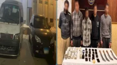 بالفحص تبين عدم ورود بلاغات فى هذا الشأن، وأمكن تحديد وضبط مرتكبى الواقعة 4 أشخاص لأحدهم معلومات جنائية والسيارتين الظاهرتين بمقطع الفيديو وبحوزتهم 4 أسلحة بيضاء مستخدمة فى ارتكاب الواقعة وكمية من مخدر الحشيش.