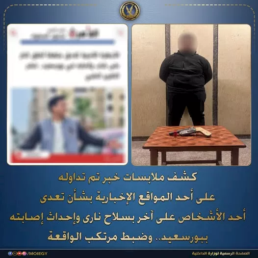 كشفت الأجهزة الأمنية ملابسات خبر تم تداوله على أحد المواقع الإخبارية بشأن تعدي أحد الأشخاص على آخر بسلاح ناري وإحداث إصابته ببورسعيد.