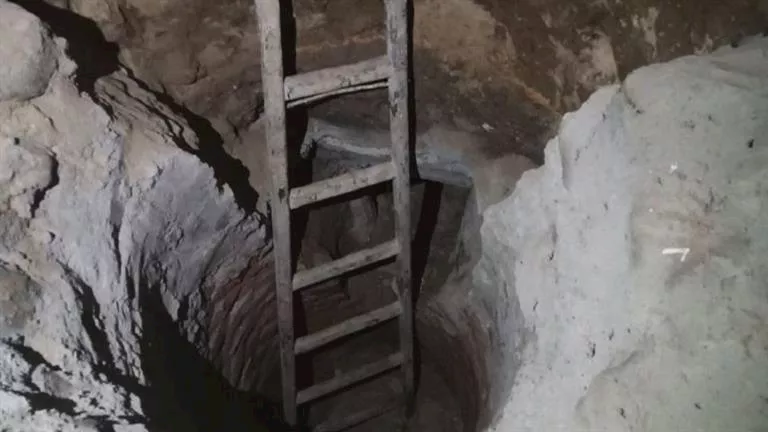 وبفحص موقع الواقعة، عُثر على حفرة بالطابق الأرضي تبلغ مساحتها نحو 7 أمتار × مترين، وبعمق يقارب 10 أمتار، إلى جانب ضبط أدوات الحفر المستخدمة.