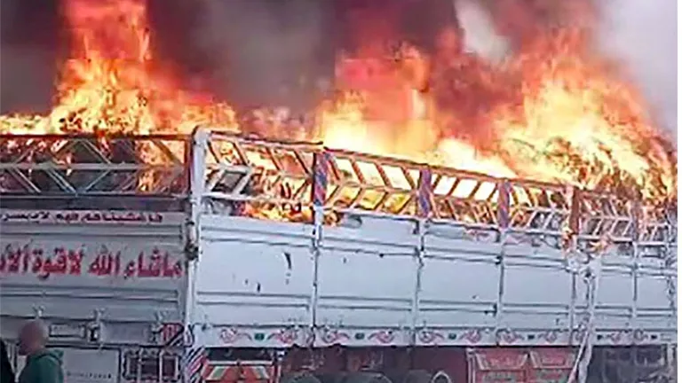 اشتعال حريق بسيارة نقل داخل شركة شحن بطريق كرداسة.. والسيطرة دون إصابات
