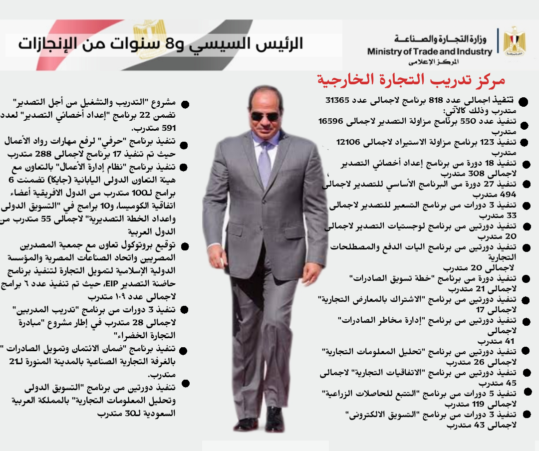 وترصد وزارة التجارة والصناعة إنجازات الرئيس في مجال التجارة خلال 8 سنوات ماضية: