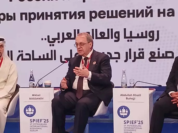 وأضاف بوغدانوف، خلال جلسة حوار بعنوان "روسيا والعالم العربي.. نحو مركز صنع قرار جديد على الساحة الغربية، على هامش منتدى بطرسبورج الاقتصادي الدولي، أن موقف الرئيس فلاديمير بوتين من الحرب الإسرائيلية الإيرانية معروف وكذلك موقف الحكومة الروسية.