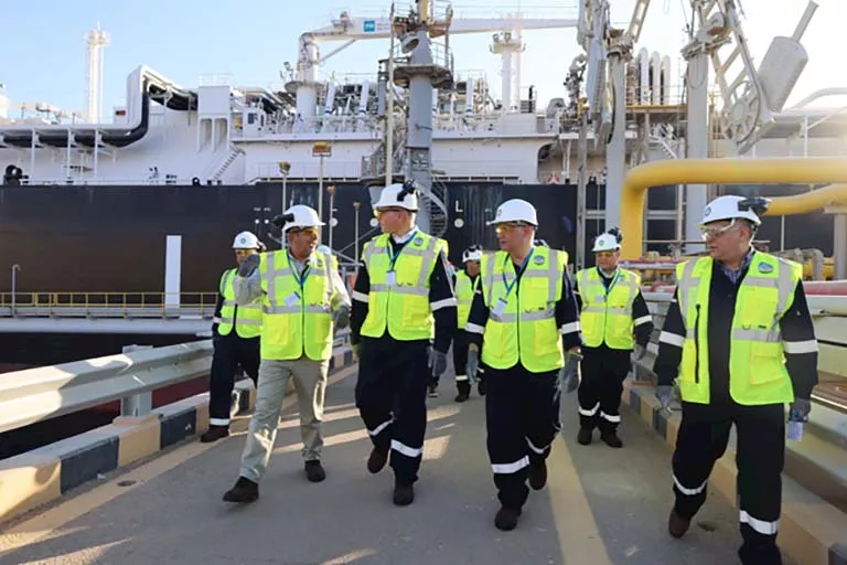 وزير البترول يتفقد بدء تجارب التشغيل لسفينة التغييز"إنرجوس فورس" بميناء العقبة