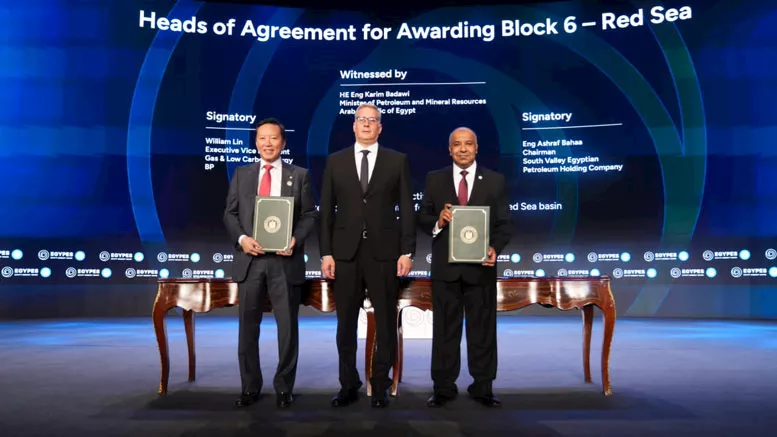 شهد المهندس كريم بدوي، وزير البترول والثروة المعدنية، توقيع مذكرة المبادئ الأساسية لاتفاقية إسناد القطاع (6) بالبحر الأحمر، بين شركة جنوب الوادي المصرية القابضة للبترول وشركة "بي بي إكسبلوريشن (دلتا) ليمتد".