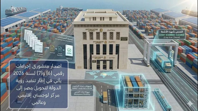 تؤكد مصلحة الجمارك، أن إصدار منشوري الإجراءات رقمي (6) و(7) لسنة 2026 يأتي في إطار تنفيذ رؤية الدولة الهادفة إلى تحويل مصر إلى مركز لوجستي إقليمي وعالمي، وتعظيم الاستفادة من موقعها الجغرافي المتميز.