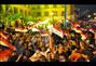 وتواصلت الاحتفالات على أنغام الأغاني الوطنية الحماسية وهتافات عشرات الآلاف في الميدان وفي المباني المحيطة به تغازلهم الطائرات التابعة للقوات المسلحة برسم علم مصر تارة، وتارة أخرى بعمل عروض في سماء ميدان التحرير.