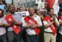 وردد المتظاهرون هتافات، ''سيسى سيسى...مرسى رئيسى'' و ''الحرية لمرسى''.