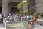 وانطلق الطلاب في مسيرة طافت أرجاء الجامعة، استقرت أمام الباب الرئيسي، على مقربة من ميدان النهضة.