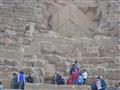 هناك أيضاً أسرة تفترش أحد الأحجار الفرعونية في طابق علوي من طوابق الهرم الأكبر "خوفو" تتناول الطعام.