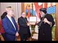 وفي نهاية اللقاء، تبادل الطرفان الهدايا التذكارية، وقدّم قنصوة درع المحافظة إلى البابا.