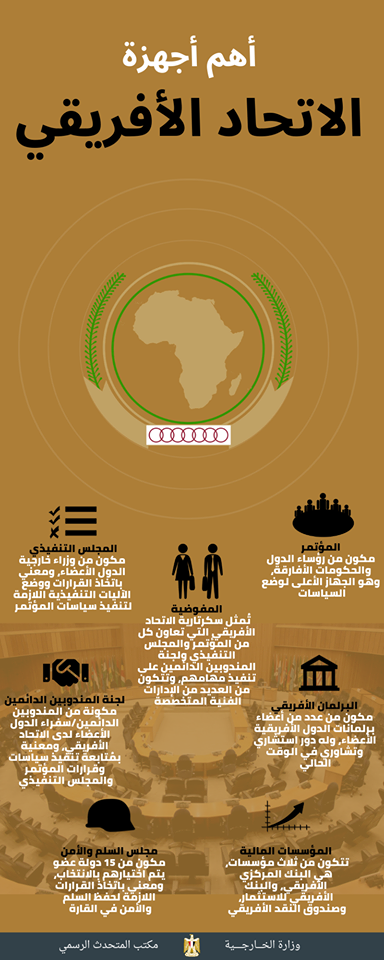 تبدأ اليوم الأحد، فترة رئاسة مصر للاتحاد الأفريقي، وذلك للمرة الأولى منذ تأسيس الاتحاد عام 2002، حيث يتسلم الرئيس عبدالفتاح السيسي، رئاسة الاتحاد من رئيسه السابق، وذلك في أديس أبابا.