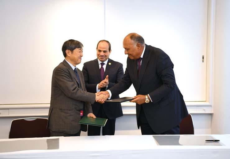 ونشرت الصفحة الرسمية لرئاسة الجمهورية، صور التوقيع على المذكرة والتي ضمت وزير الخارجية المصري، خلال مشاركة الرئيس السيسي في قمة "التيكاد" الحالية باليابان.
