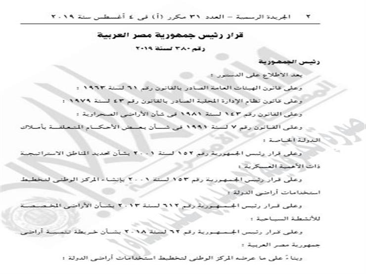 ونشرت، اليوم، الجريدة الرسمية القرار الذي حمل رقم 380 لسنة 2019.